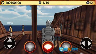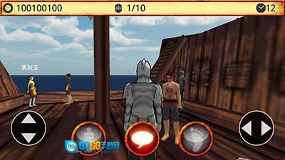 游戏开始后,角色会出现在一艘船上,正与一个人交谈,此时点击右下角的三角箭头就行。接下来去和对面头上带有名字的人对话,完成对话后就能进入大陆了。