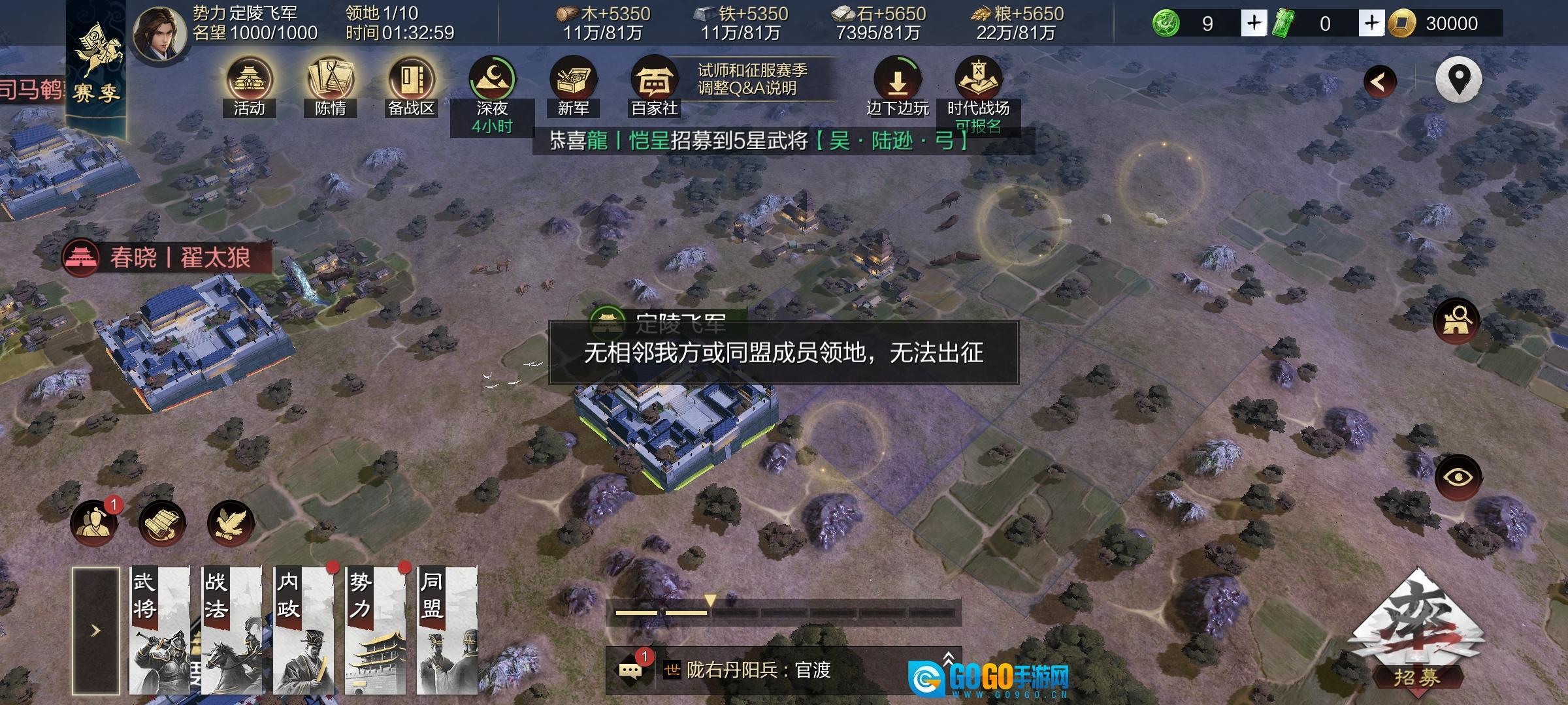 1、点击与已有领地相邻的土地,在弹出的菜单里选择出征。需要注意的是,仅相邻土地可进行出征操作,玩家拥有的领地数量越多,可出征的范围就越广。确定扩张方向,规划合理的行军路线,有助于玩家更迅速地扩大势力范围。
