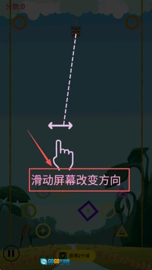 2、随后,按照“滑动屏幕改变方向”的提示操作,调整至合适角度后松开手指,射出第一波球,通过撞击目标获取分数。