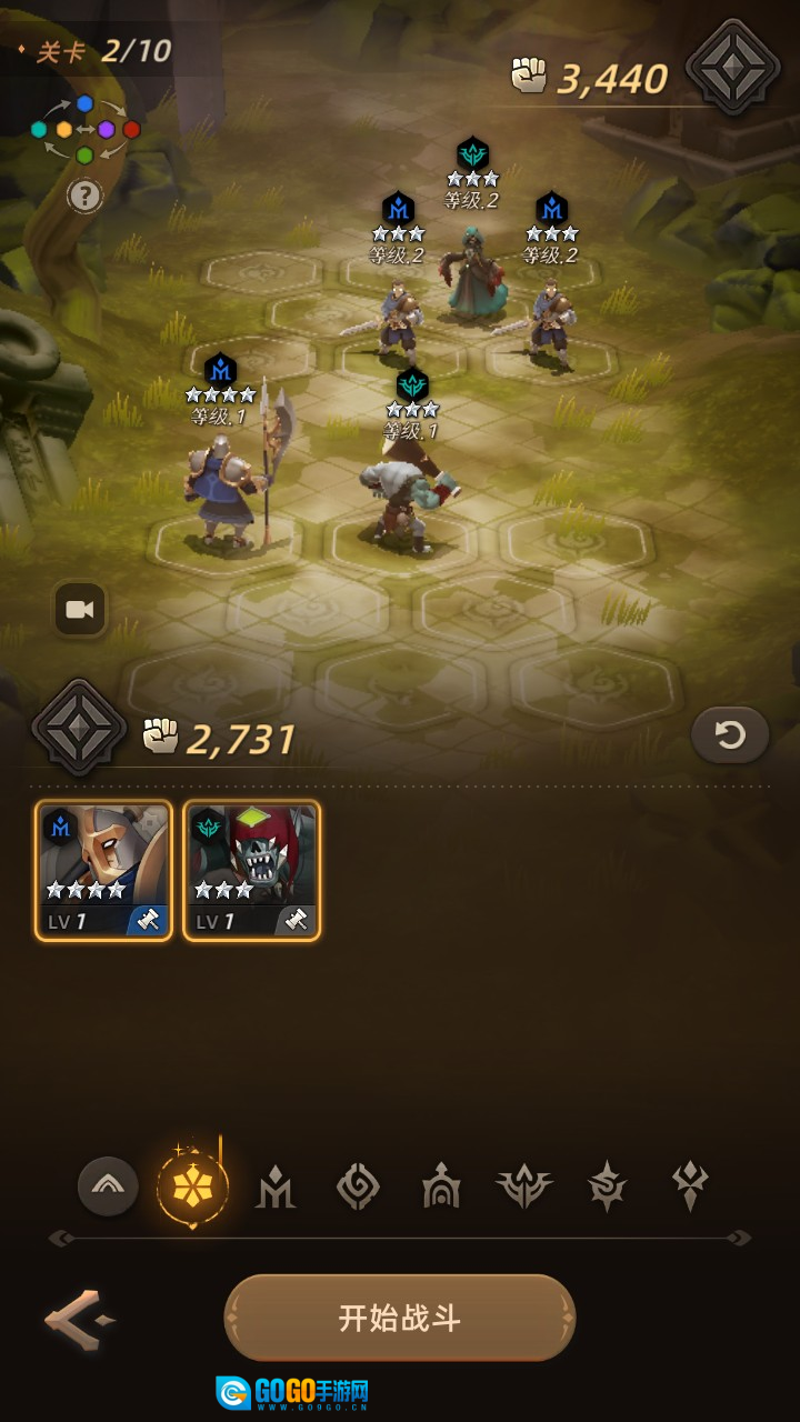 进入游戏后,主线剧情随即展开,马上就要进入战斗环节。您需要先完成英雄的阵型布置,之后战斗就会自动进行。