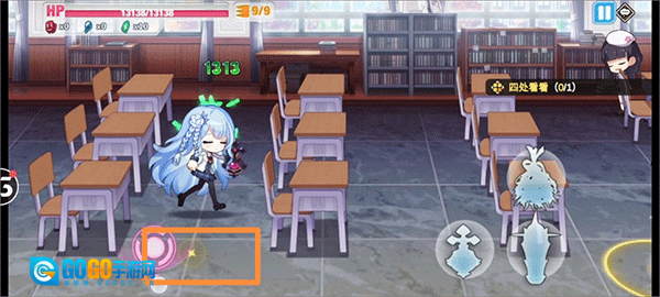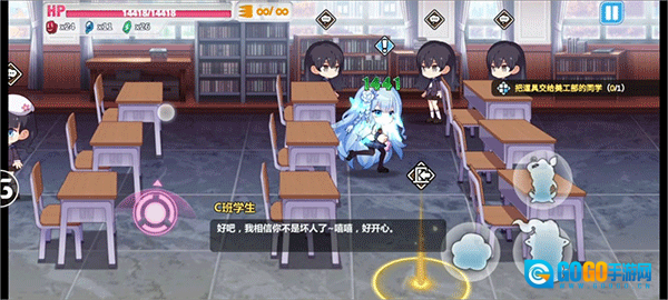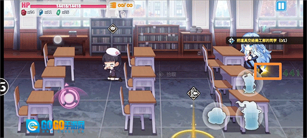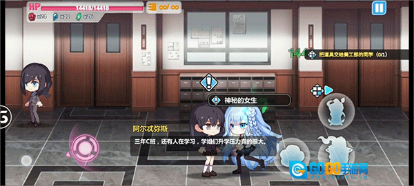 首先抵达三楼,向左转弯,走到3—B班,会有一位神秘女生现身,带上她,再前往2—C班。