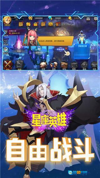 2、策略战斗:游戏里的战斗系统有着别具一格的设计,玩家得巧妙运用自身的技能与战术,去应对各式各样的敌人。每一位星座英雄都具备独特的技能和属性,玩家要依据敌人的特性,挑选出恰当的战斗策略。另外,游戏中还设置了多种战斗模式,像竞技场、公会战等,能让玩家和其他玩家进行紧张刺激的对战。
