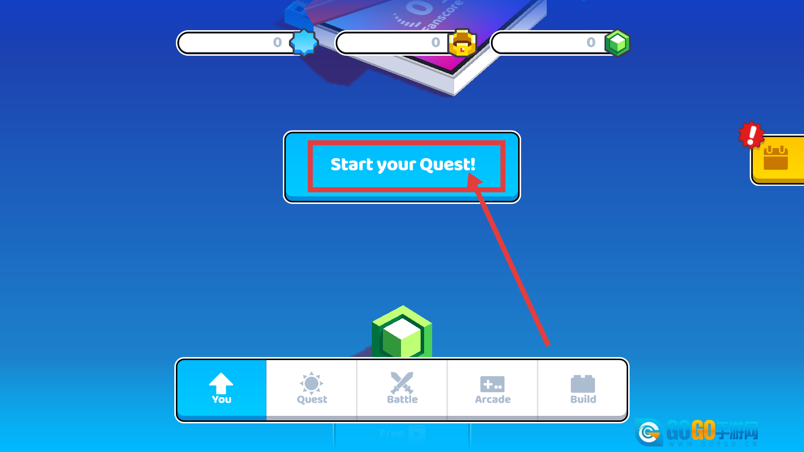 1、点击【Start-your-Quest!】按钮来开启任务,进入游戏的冒险环节,这是推进游戏进程的关键一步。