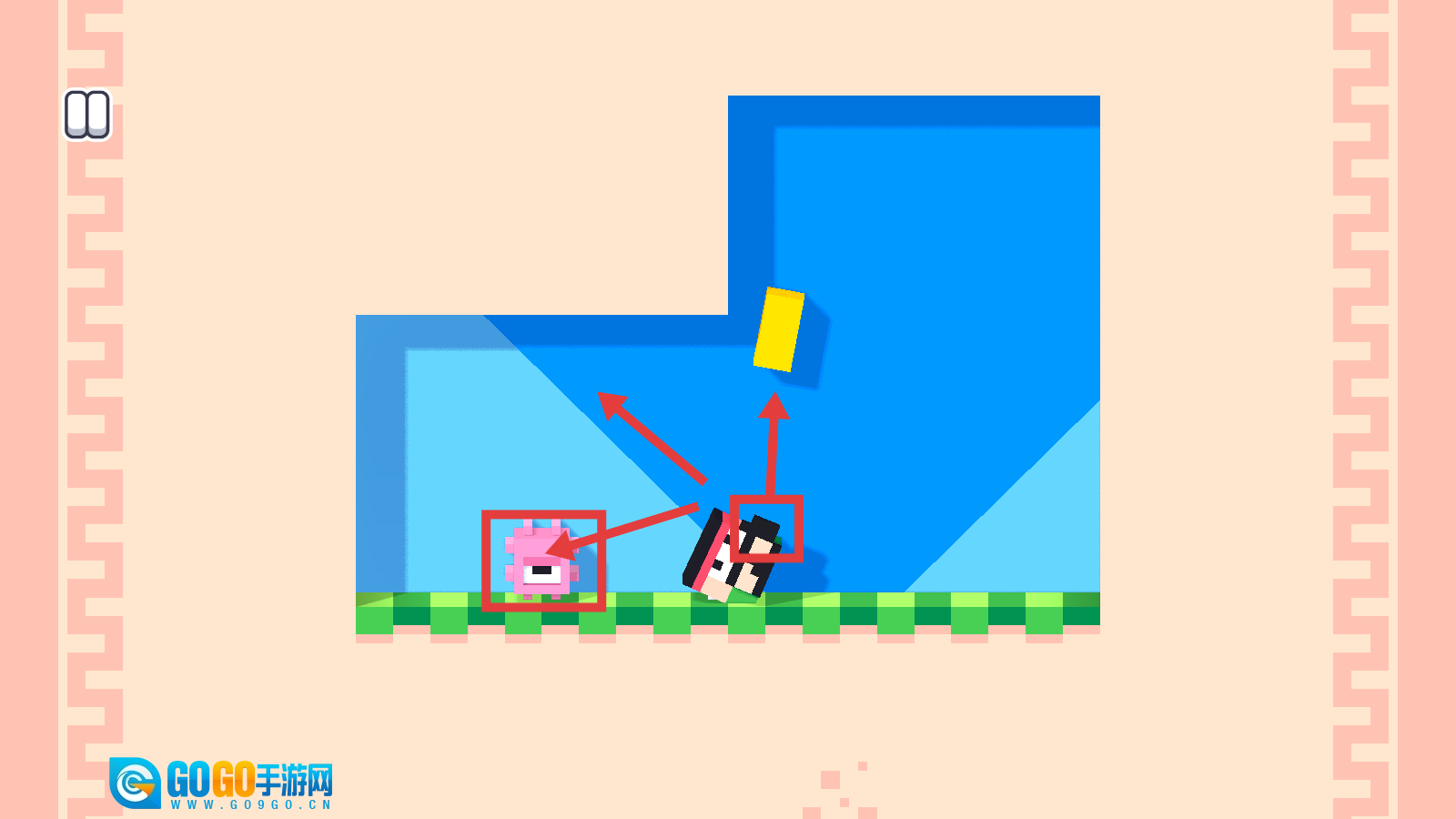 2、在关卡里操控角色移动时,要留意躲避粉色敌人的攻击,并且找准恰当的时机采取行动,保证自身安全地向前推进。