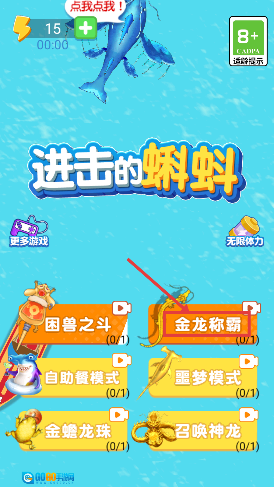 1、选择【金龙称霸】模式开启游戏,在该模式下能够收集金龙、挑战限时任务,还能解锁趣味玩法。