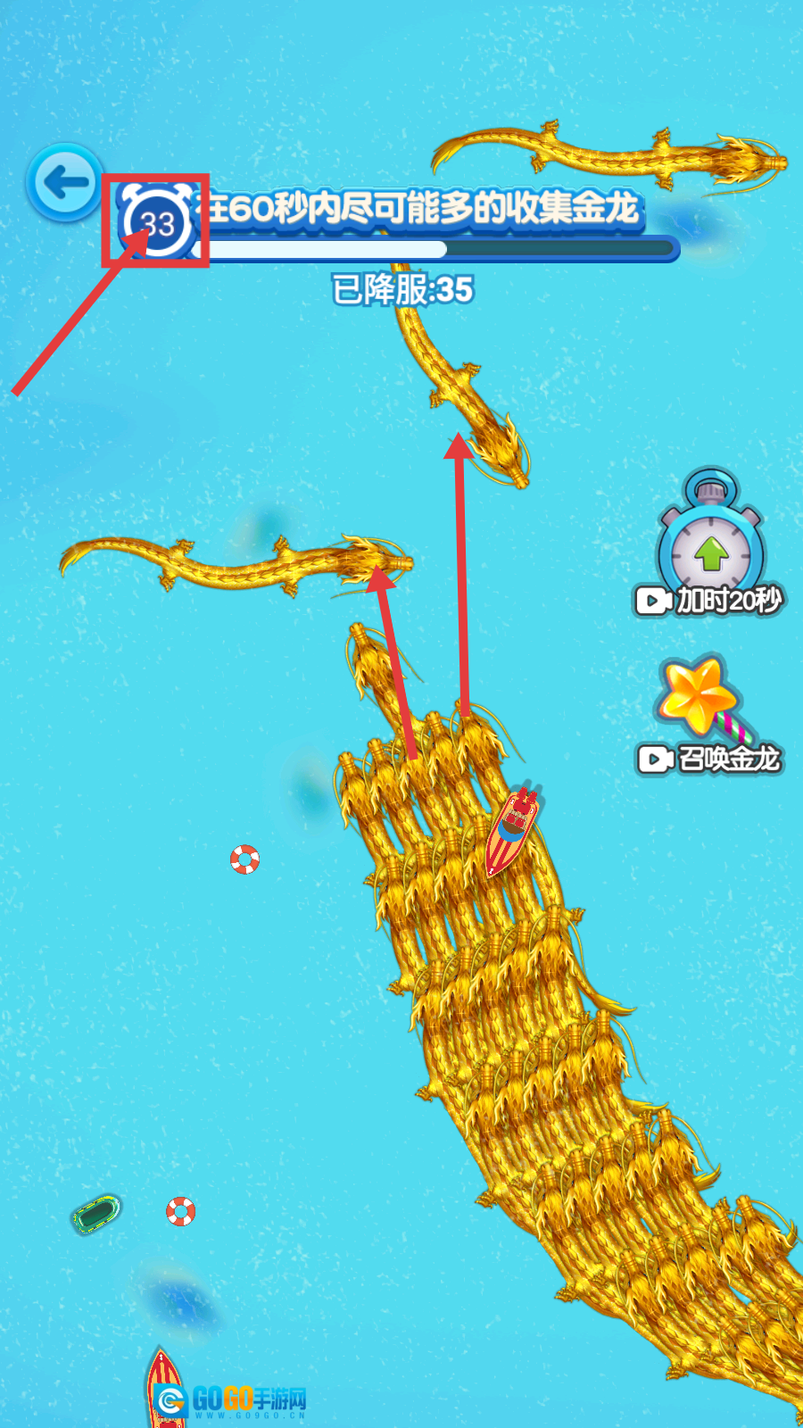 3、还剩【33秒】时,继续高效收集金龙,借助时间优势增加【已降服】的数量,全力冲刺更好的成绩。