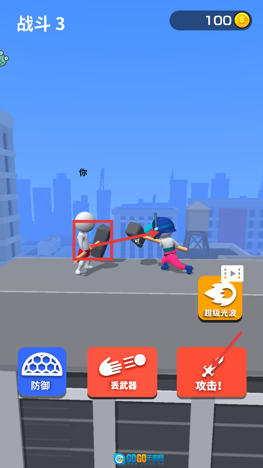 2、在【战斗3】环节,操控角色运用武器,点击【攻击!】按钮,向敌方发动有效攻击。
