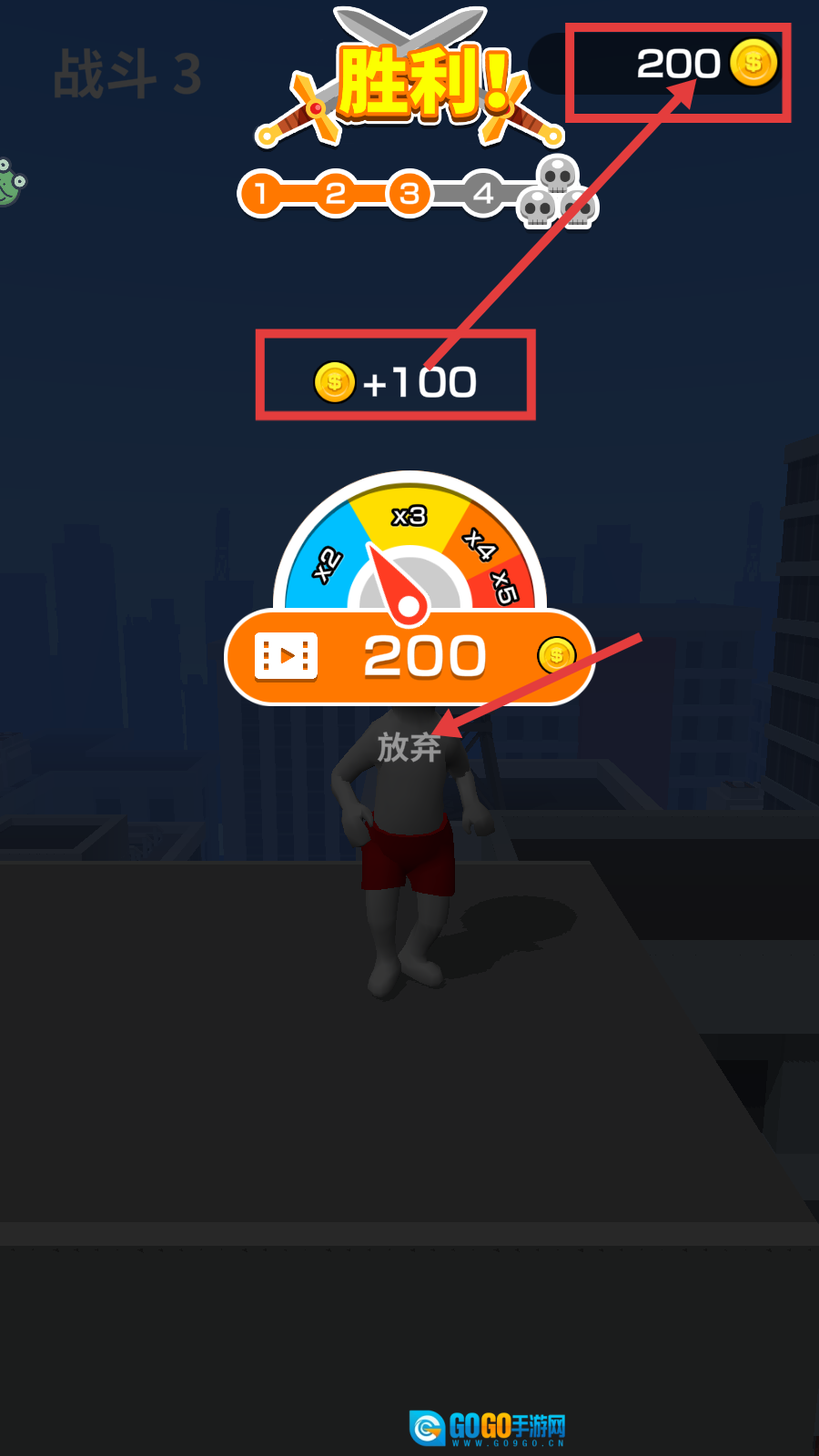 4、战斗获胜后将取得【+100-金币】的奖励,当金币累计达到【200-金币】时,这些金币能够用来进行资源升级或者解锁新的游戏内容,助力你继续挑战后续的关卡。