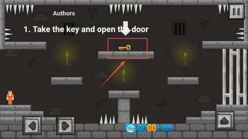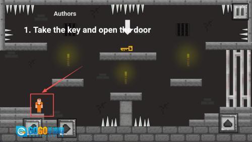 2、操控角色移动:借助基础操作来控制角色在像素场景里移动,躲开触发的机关陷阱,慢慢朝着钥匙所在的位置靠近。