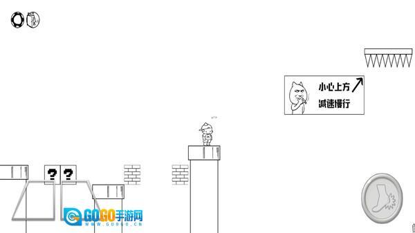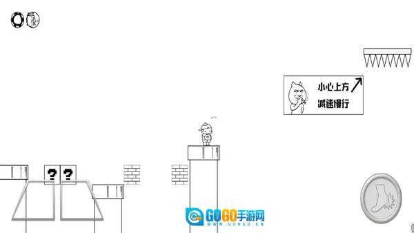 注意上方那些光滑的区域,你的角色踩上去会滑倒;还有锯齿也要当心,碰到就会直接导致角色死亡。