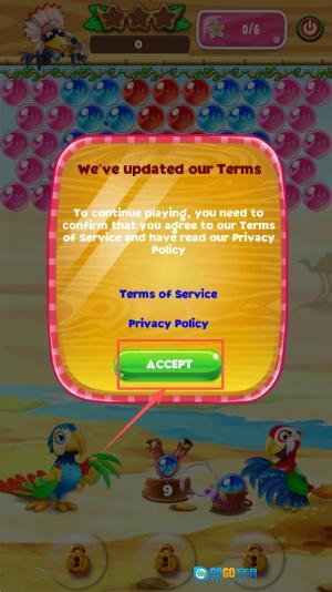 2、前往条款更新页面阅读相关说明,点击「ACCEPT」按钮以确认同意服务与隐私政策,随后即可继续进行游戏。
