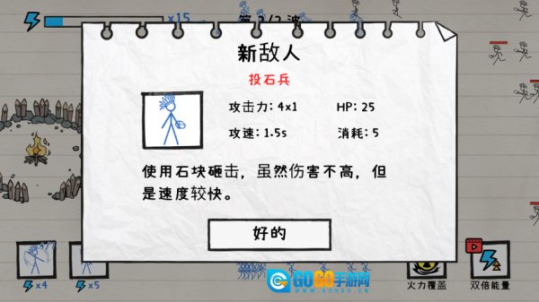 2、战略部署:战斗开始前需做好战略规划,挑选适宜的火柴人进行布置。每个火柴人都具备独特的攻击范围与技能,玩家要结合地形特点以及敌人所处位置,对火柴人的站位进行合理安排。
