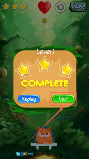 4、当出现「Level 1 COMPLETE」的提示时,可点击「Next」进入下一级关卡,也能选择「Replay」来刷新更高的星级评分。