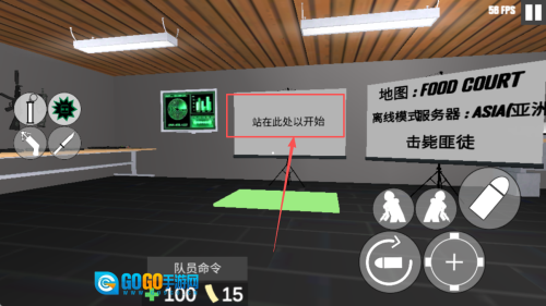 4、游戏开始方法:进入游戏准备界面后,找到标有“站在此处以开始”的提示并点击,即可启动游戏。