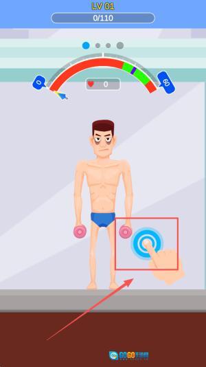2、接着,根据游戏提示,点击并拖动屏幕上的哑铃图标来模拟举重动作。