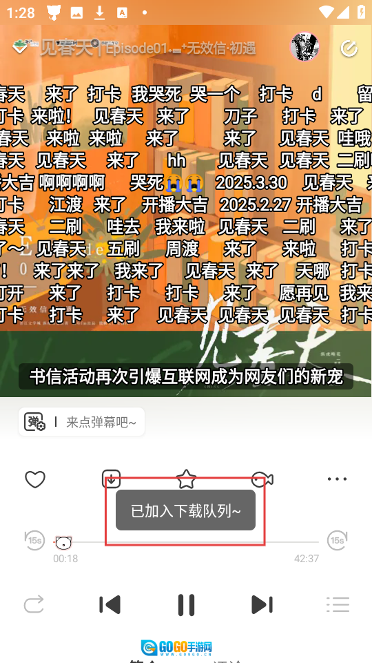 进入收听页面后,点击对应的按钮,就可以将《见春天》添加到队列中了。