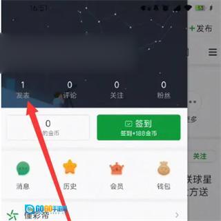2、找到自己发表选项。