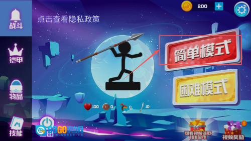 4、如何选择游戏难度:在战斗模式界面,选择“简单模式”或“困难模式”开始游戏。