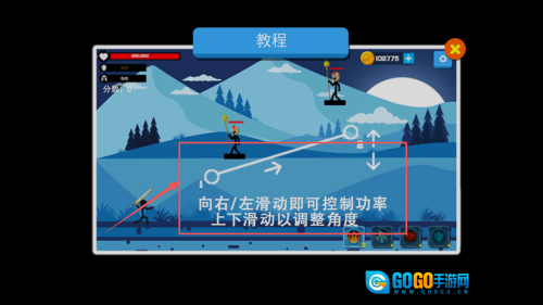 2、如何控制攻击:在教程中,学习通过向右/左滑动控制攻击方向,上下滑动调整攻击角度。