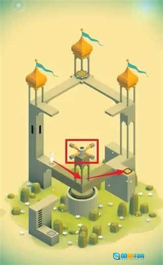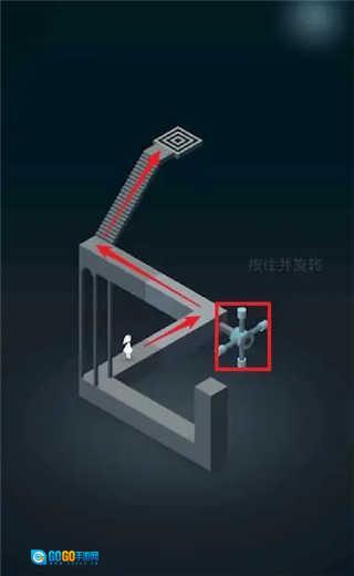 1、首先转动阀门,让艾达到达台阶处;接着旋转阶梯,使艾达进入通道;再次转动阀门,让艾达踩上机关。艾达返回通道后再次操作旋转,使其抵达触发机关所在的通道;艾达走上该通道后,再次转动阀门将自己带到门前。