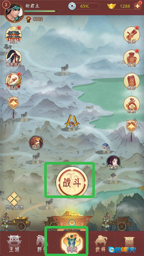 1、首先你要在本站安装《霸王天下》这款游戏,进入游戏后,点击“征战”选项即可开启战斗。