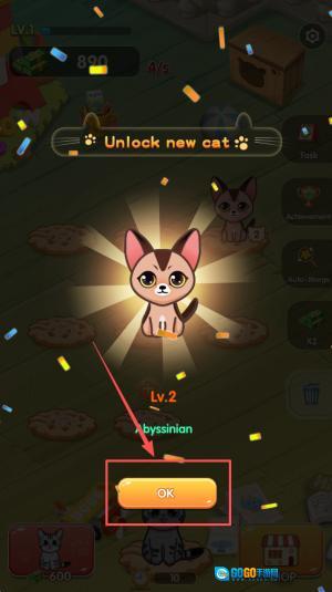 2、接着,当你解锁新的猫咪时,点击“OK”按钮确认。
