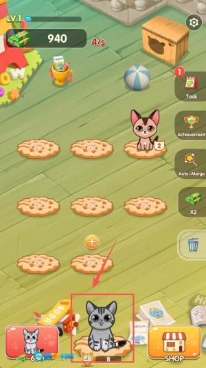 1、首先,通过滑动屏幕来合并相同的猫咪,以解锁更高级的猫咪。