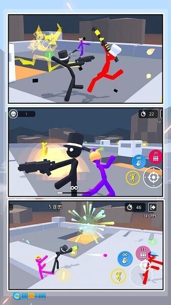 4、实时对战:游戏采用实时对战模式,让玩家可以与其他玩家进行实时对战,感受真正的王者之战,与各种敌人激烈的战斗,体验强大的火柴人战斗技巧。