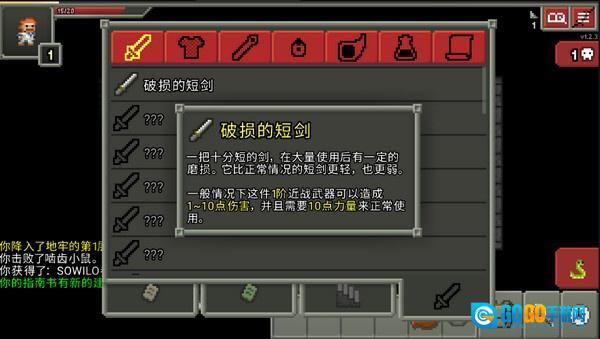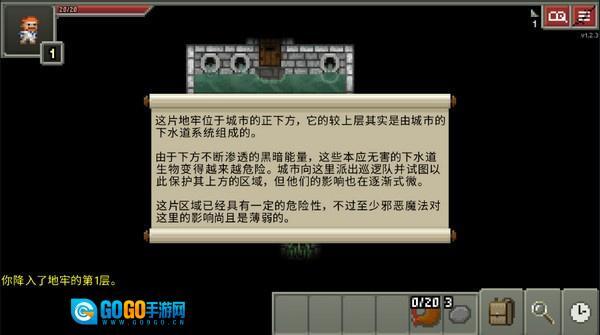 2、地牢第0层,留意【16/20-生命值】,躲避老鼠和蛇类怪物,谨慎探索避免受伤。