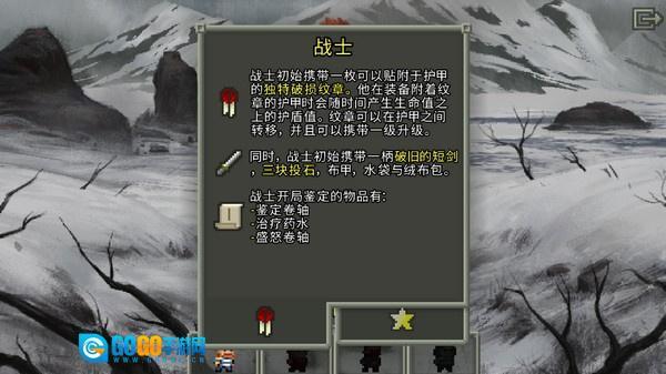 1、选择【战士】,初始携带【破损纹章】,装备护甲时产护盾,纹章可转移并带一级升级,利用此特性提升生存力。