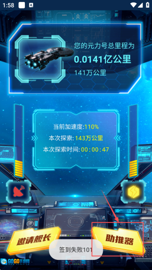 4、如何使用助推器:在飞船信息界面,点击“助推器”按钮,使用助推器增加飞船速度。