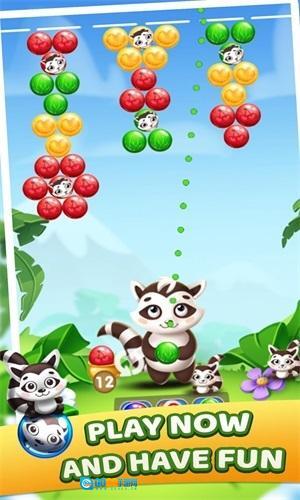 1、可爱精美的画面:游戏采用了精致细腻的画面设计,浣熊角色可爱迷人,泡泡颜色鲜艳多样。整体画面色彩明亮,给玩家带来愉悦的视觉享受,增加了游戏的吸引力。