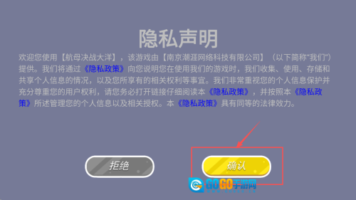 1、同意隐私政策的方法:游戏启动时,阅读隐私政策后点击“确认”按钮即可完成同意操作。