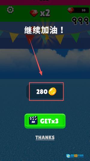4、最后,点击“继续加油!”按钮尝试继续游戏,或者点击“GET x3”按钮来获取更多金币。