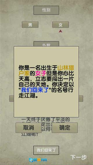 2、武林游戏的画面简洁美观且留有留白,剧情故事精彩有趣,你可以选择性别和昵称来创建角色;