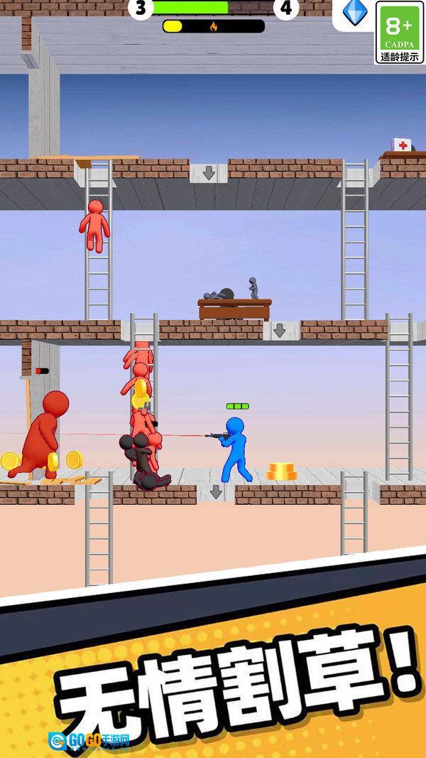 2、流畅的操作体验:游戏的操作简单直观,玩家只需通过屏幕上的虚拟按钮来控制角色的移动和射击。响应灵敏的触控系统和精准的操作设计,使玩家能够更加轻松地击败敌人和完成任务。