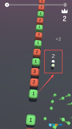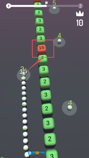 3、选择数字穿越:当一侧小球吞完后,观察障碍物方块数字,选择与自身长度适配的数字穿越,避免长度不足失败。