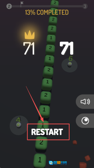 4、最后,若游戏失败,点击“RESTART”按钮重新开始挑战更高分数。