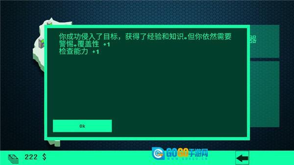 3、侵入成功后,领取【效能+1-追踪能力+2】奖励,点击【Ok】继续,提升角色能力以便挑战更高难度目标。