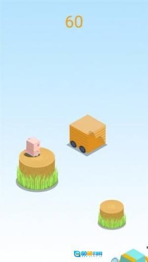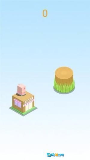 3、操控角色跳跃:松开屏幕让粉色小猪跃向目标圆形木板,确保精准落地,持续推进闯关进程。