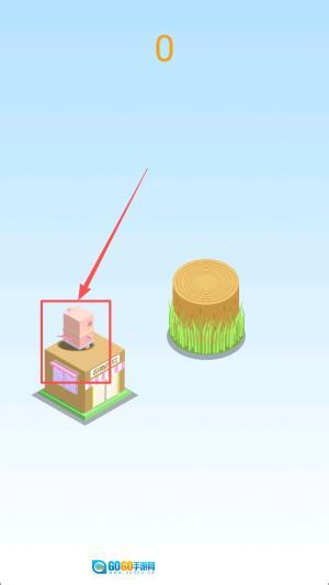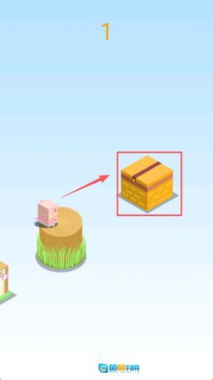 2、接着,长按屏幕控制小猪的跳跃力度,松手即可跳到下一个平台。