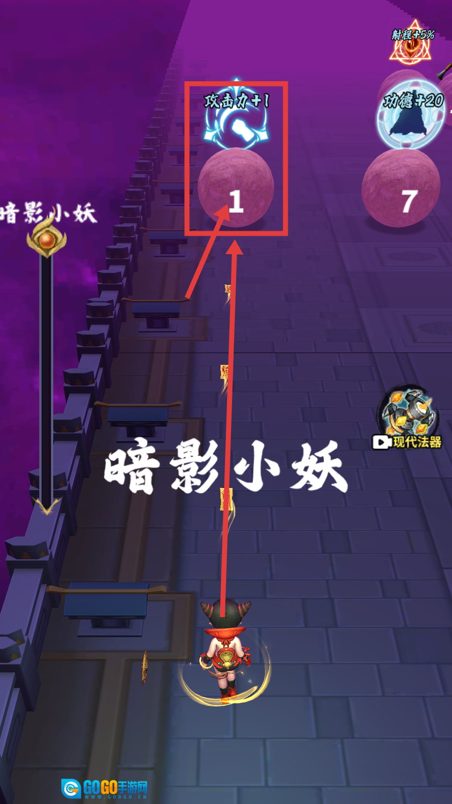 3、在【暗影小妖】关卡中,优先获取【攻击力+1】buff,提升对暗影小妖的伤害,推进关卡进度。