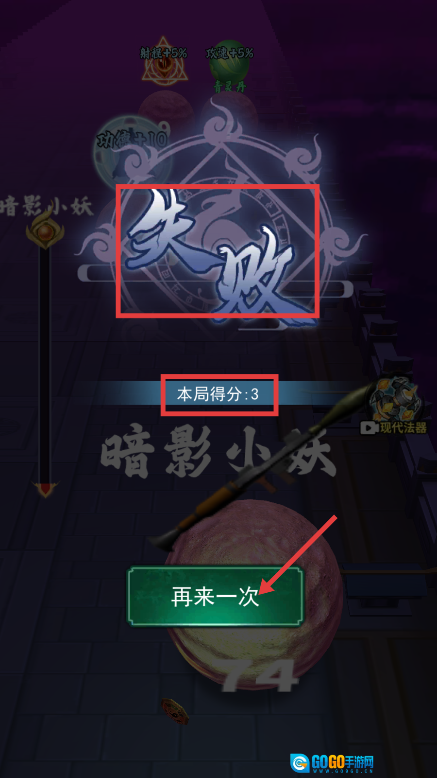 4、若出现【失败】界面,本局得分3时点击【再来一次】重新挑战,积累经验提升战力争取更高得分。