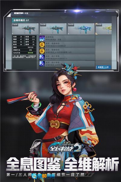 2.新添百科功能,能够查看枪械的各等级属性以及第一、第三视角的特效效果图。