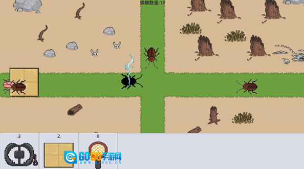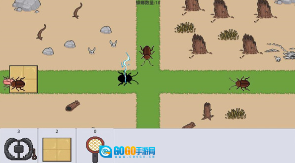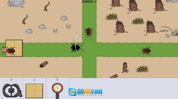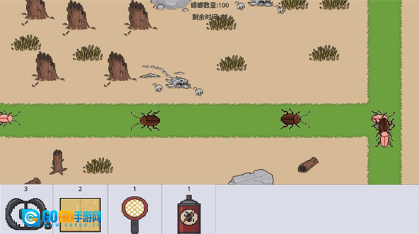 4、使用下方的道具栏的道具,拖到游戏内,消灭蟑螂