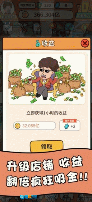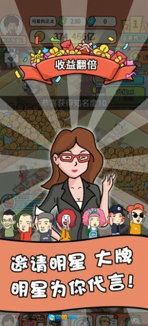 1、收集摊位技能,寻找不同的投资项目,甚至请明星为你代言,这是你做大做强的流程。