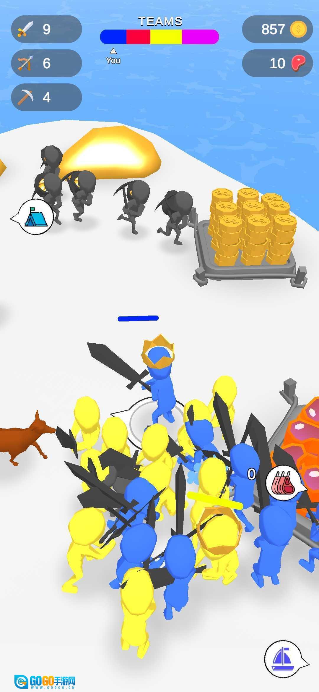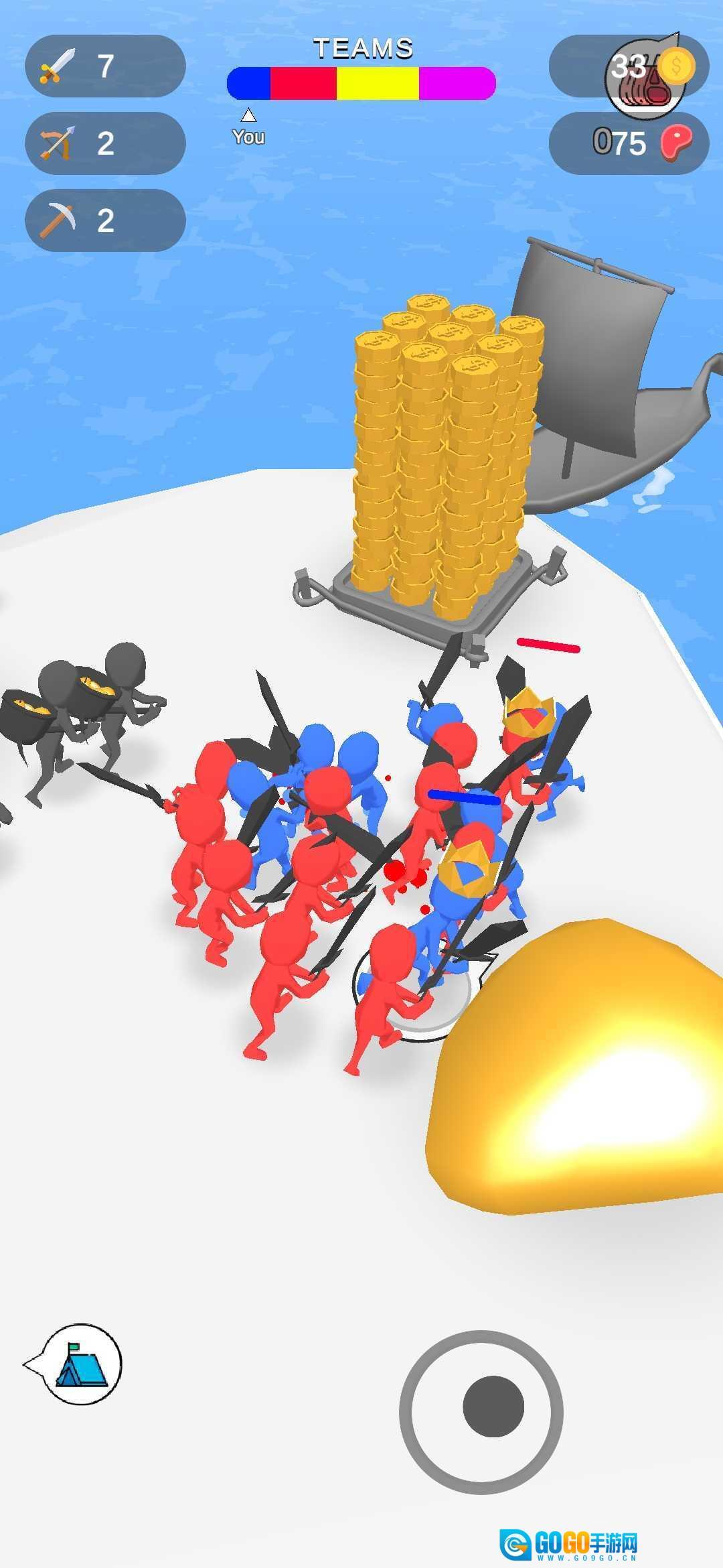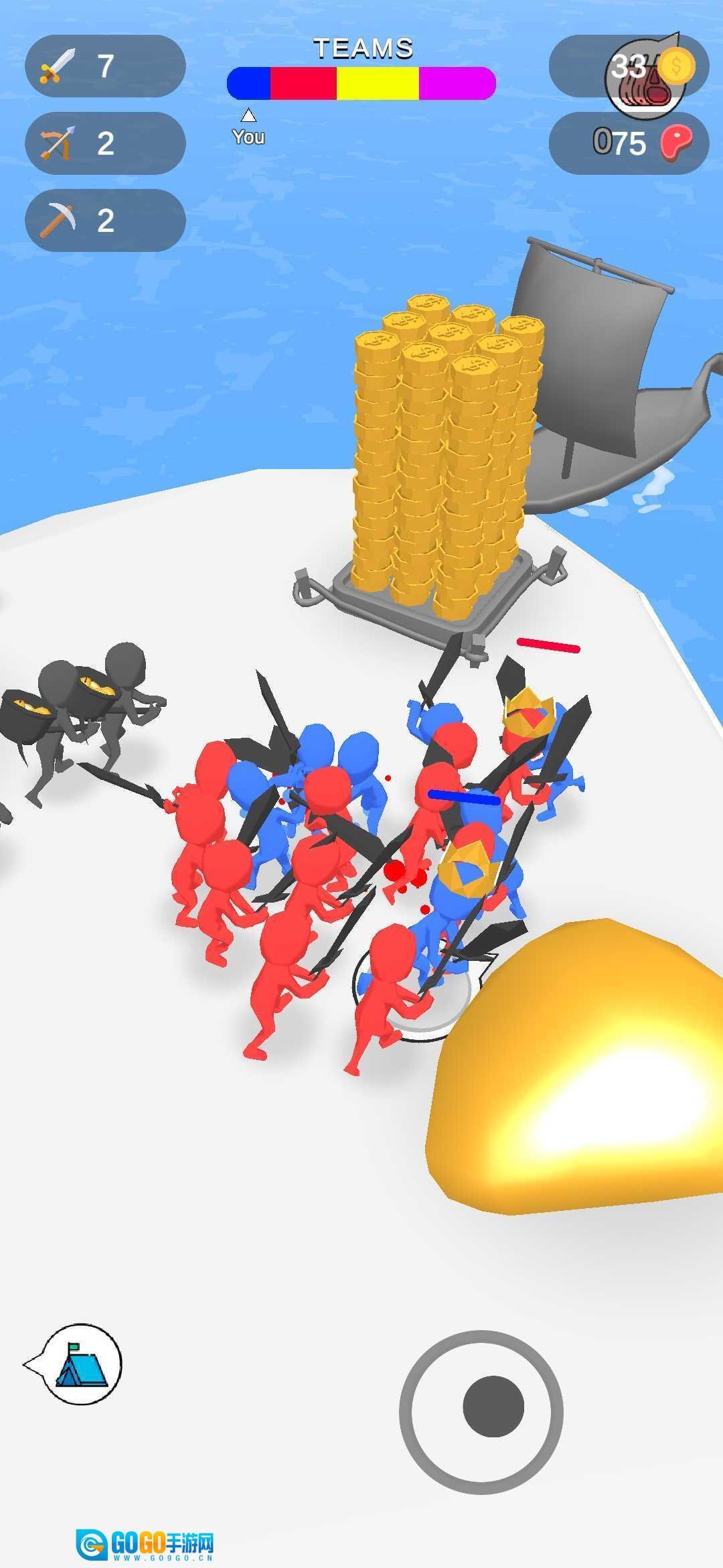3、玩家需要击败岛屿各区域的敌人,这样既能扩充团队规模,也能为士兵升级武器。