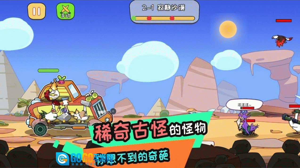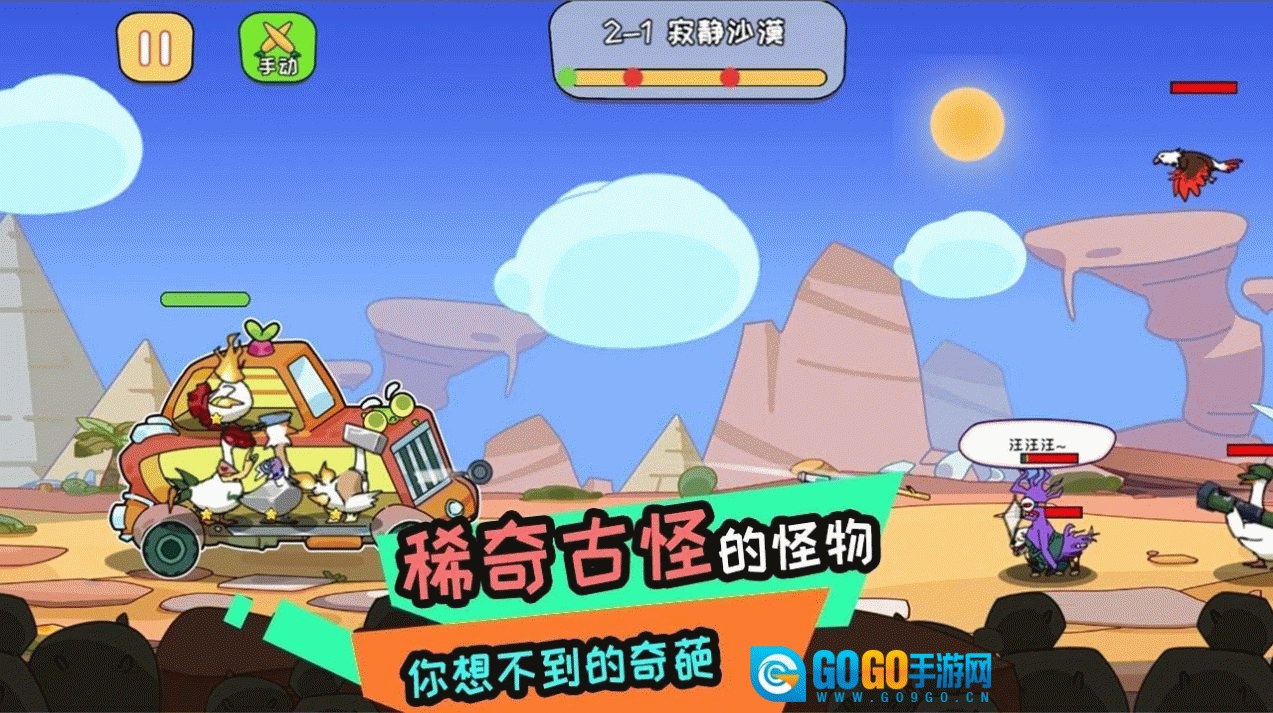 1、一种未知的病毒袭击了鹅城,导致许多动物发生变异,因此阿呆的鹅必须击退来袭的变异体军队。