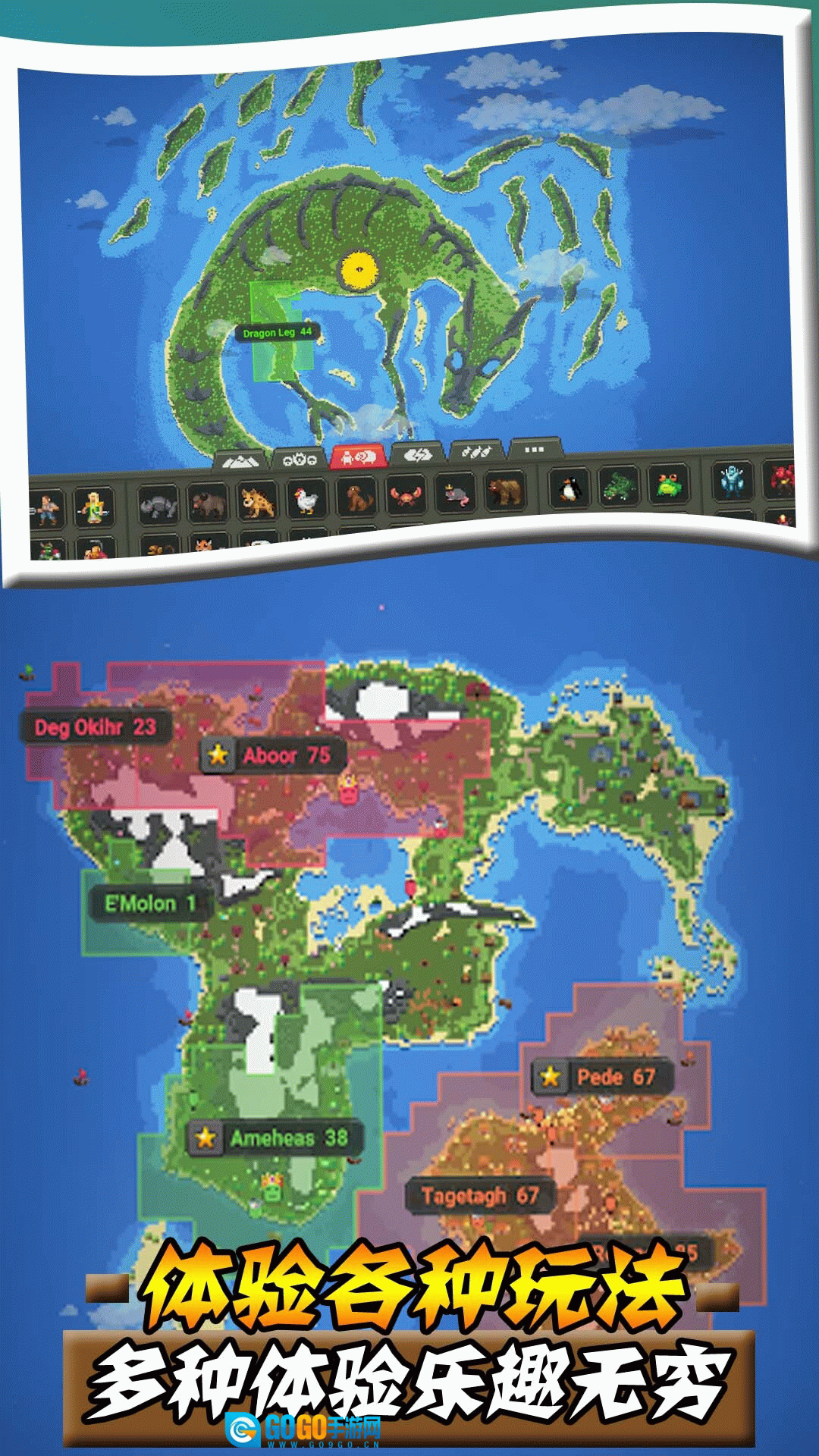 2、在沙盒帝国创造棉羊、灰狼、兽人、和其他神奇的生物!感受作为创始主的乐趣。