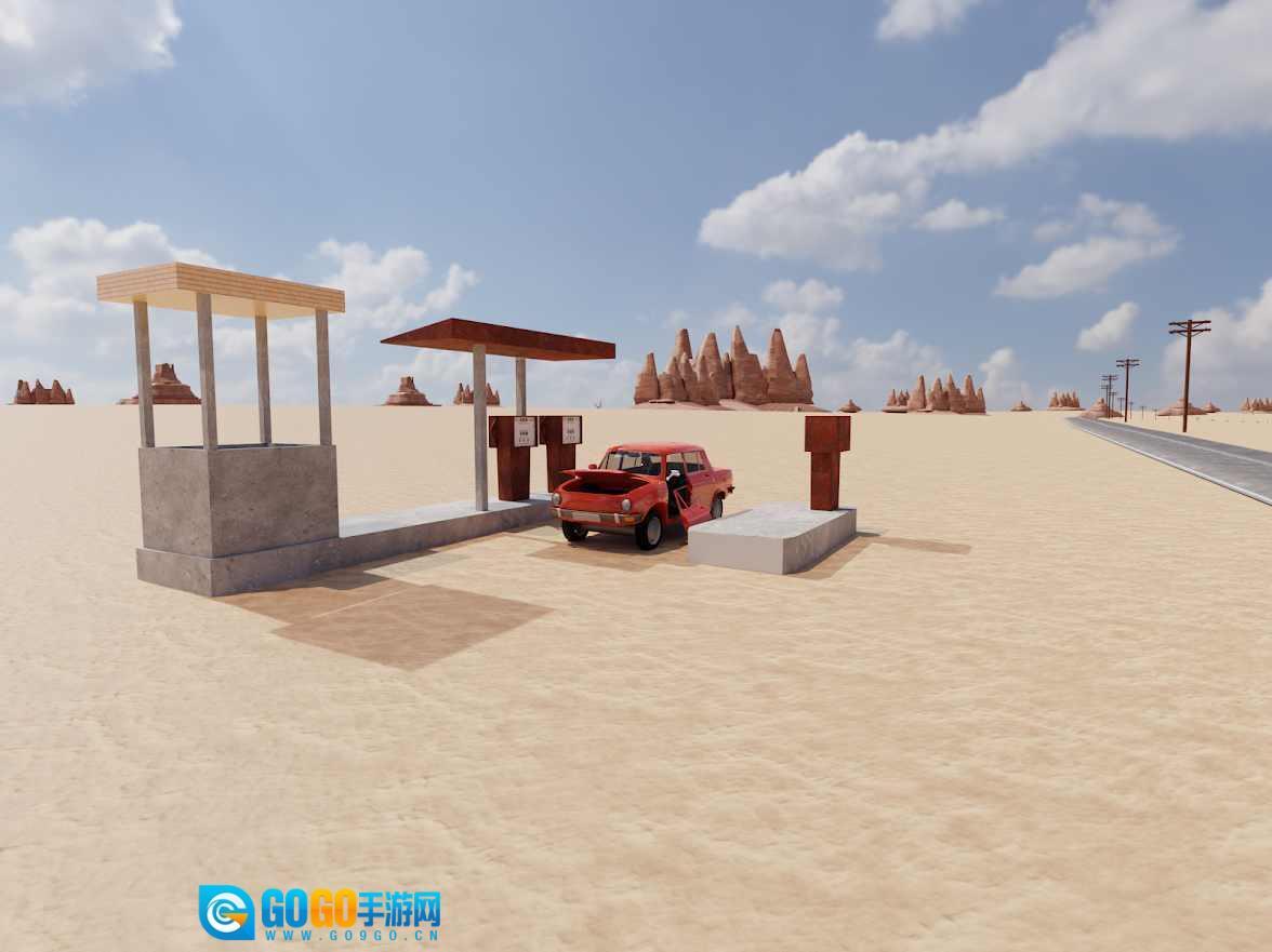 从车库取来燃料罐,把你的车加满油;加完油后,再拿起发动机油罐给它补充;由于这辆车已经两年没开过了,别忘了把冷却液也加满——这样它在沙漠里就能好好散热,不会因为高温出问题。